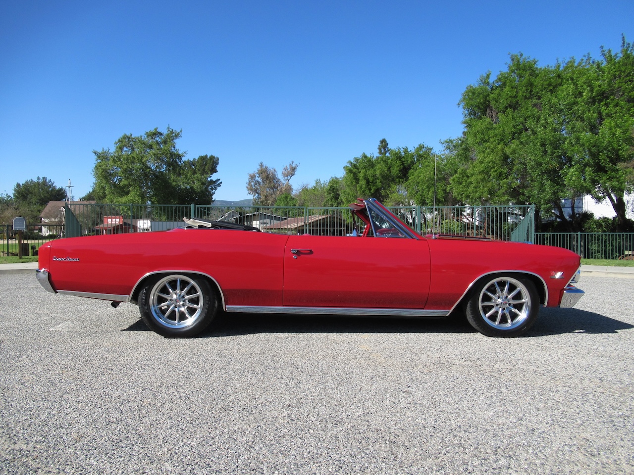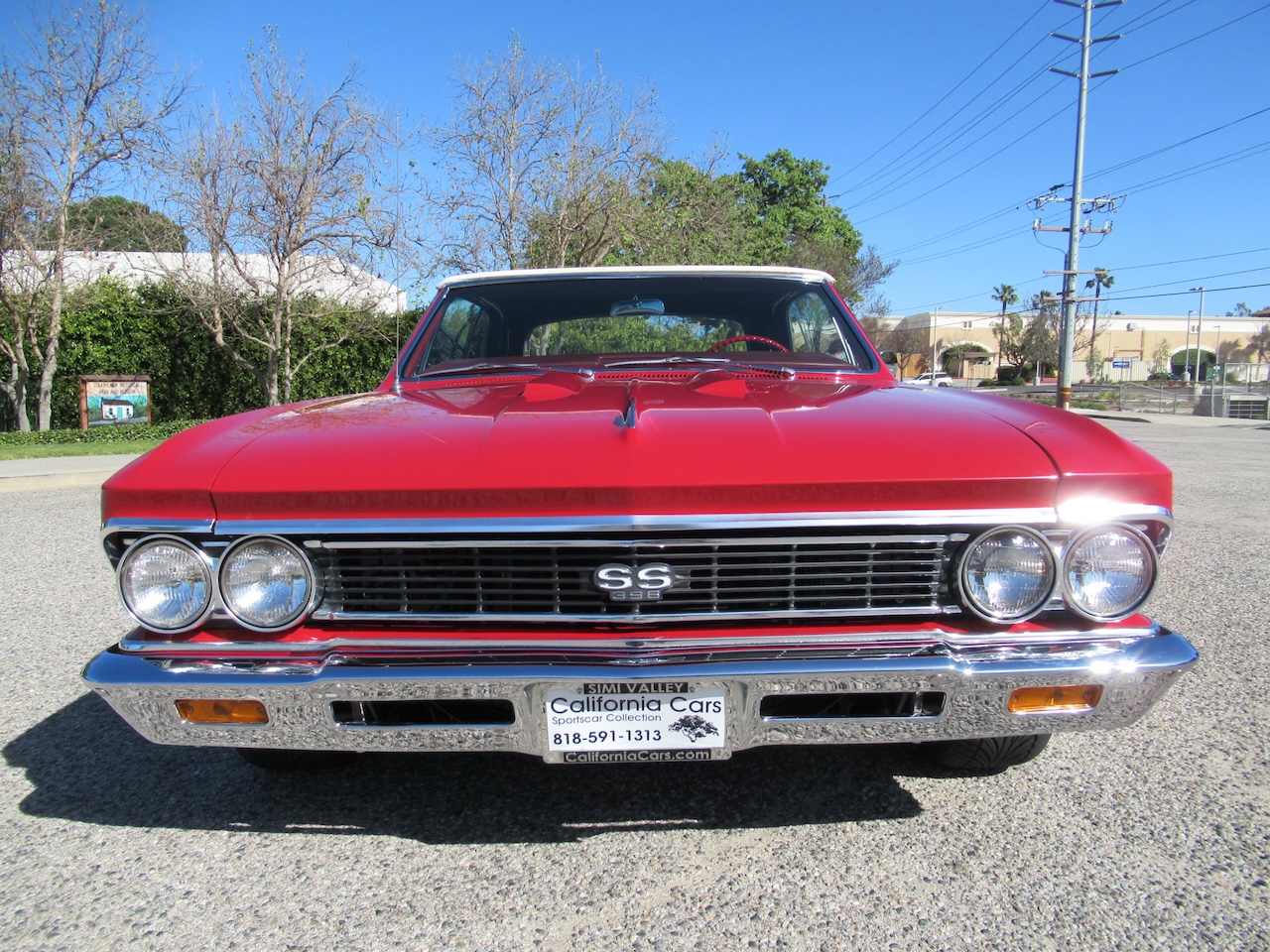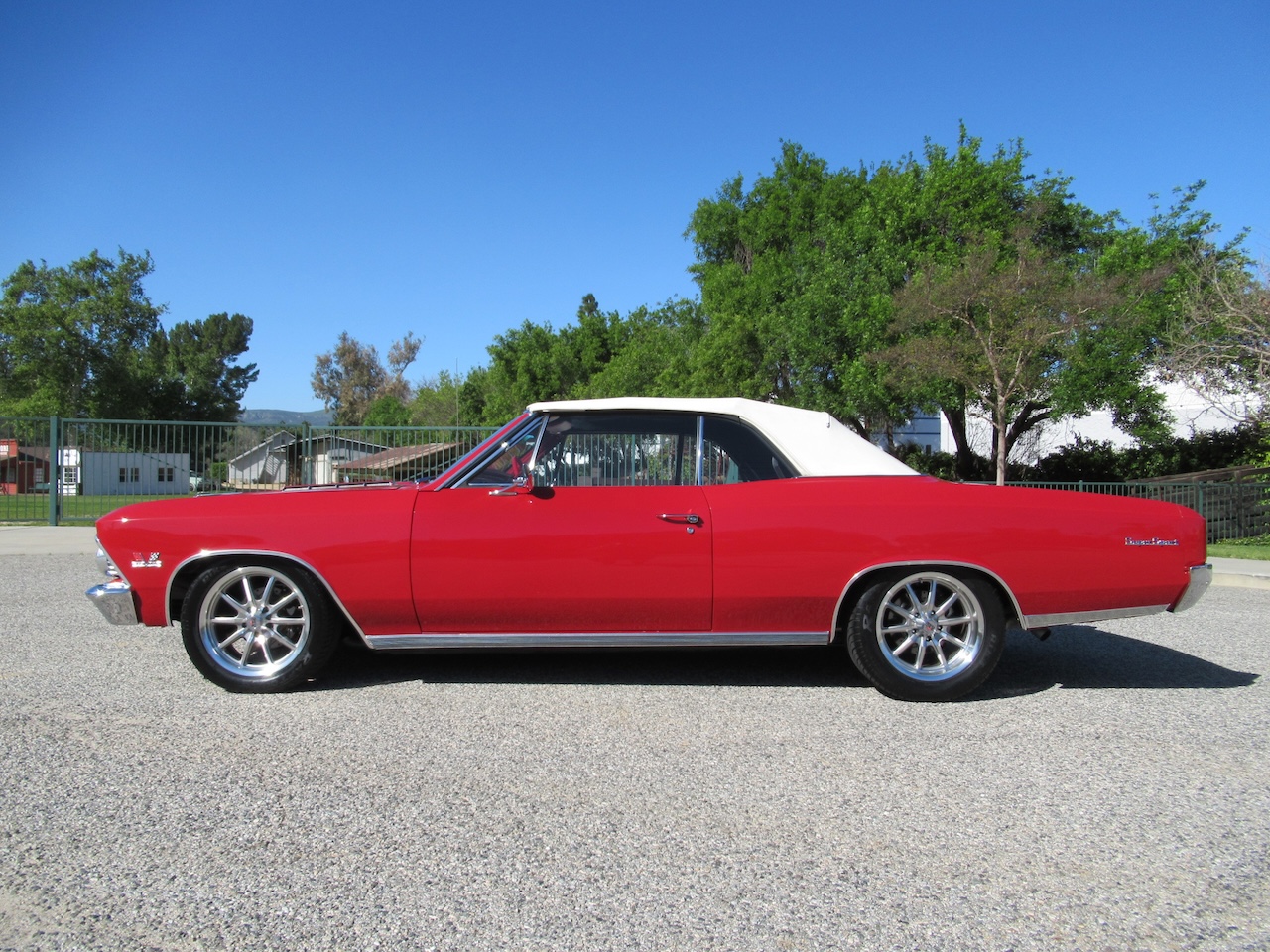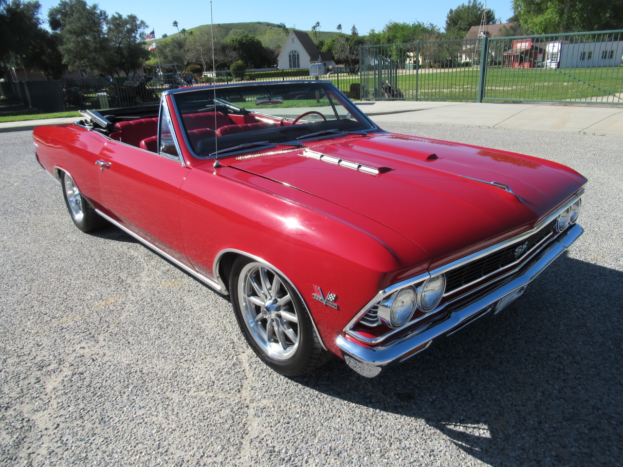 How about a true SS396 Convertible to add to the stable! This rare Super Sport is one of only 5,393 Convertibles made out of over 72,000 SS396 Chevelles for 1966. This one is finished in Regal Red with a White Convertible top per the cowl tag and was purchased new and stayed in Southern California since new. Although mostly original, a few drivability upgrades were made for comfort and better highway use. Under the hood sits the original and rebuilt matching number 396/325 Horsepower V8 with a polished Edelbrock intake, dual feed Holley 4 barrel carburetor, Ball Milled polished aluminum valve covers, factory power steering, CPP 4 wheel power disc brakes with slotted and drilled rotors, Vintage A/C with R134 Freon and a set of Ceramic coated thick flange Headers with dual exhaust running Flowmaster mufflers out to the rear for a sweet sound. Power gets put to the pavement through a fresh 700R4 automatic overdrive transmission followed by the original 12 Bolt rear differential with 3.73 Posi-Traction gear ratio. Front tubular control arms with adjustable coil overs and a set of 17 inch staggered Rev wheels on all four corners give it a little better handling and a bit of a Restomod stance. The Red vinyl interior is mostly stock in appearance with a bench seat, removable arm rest with cup holders, original steering wheel, knee knocker tachometer, Custom Auto Sound Stereo with kick panel speakers and a nice 3 pack set of under dash gauges for accurate engine vitals. This body style has always been a favorite and seems to be gaining a lot of popularity these days.