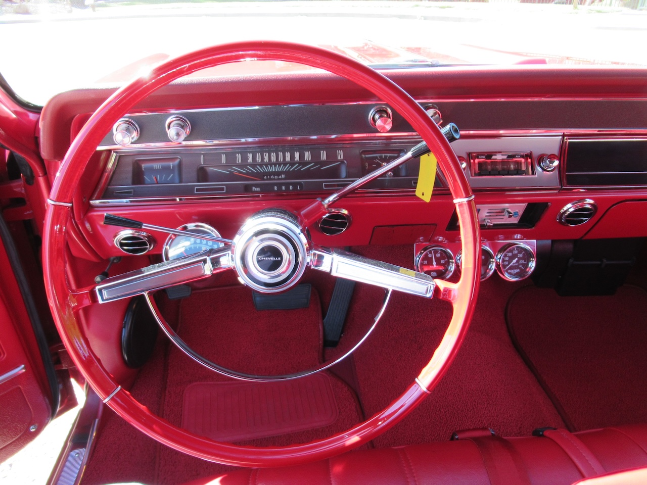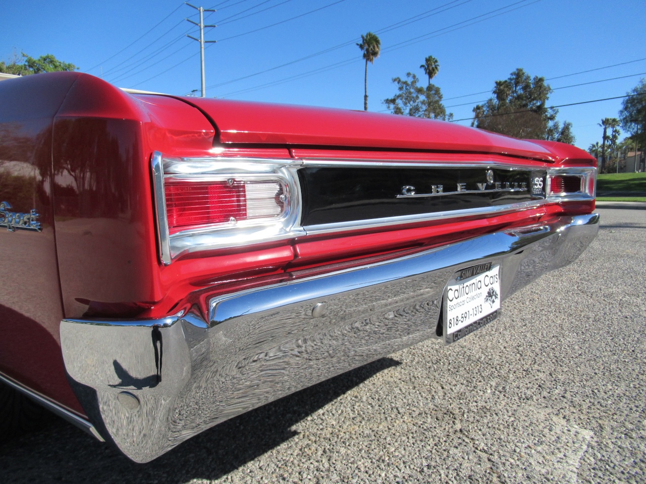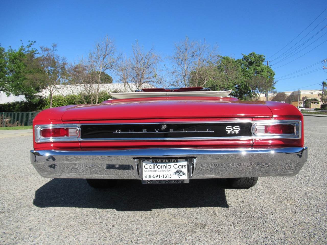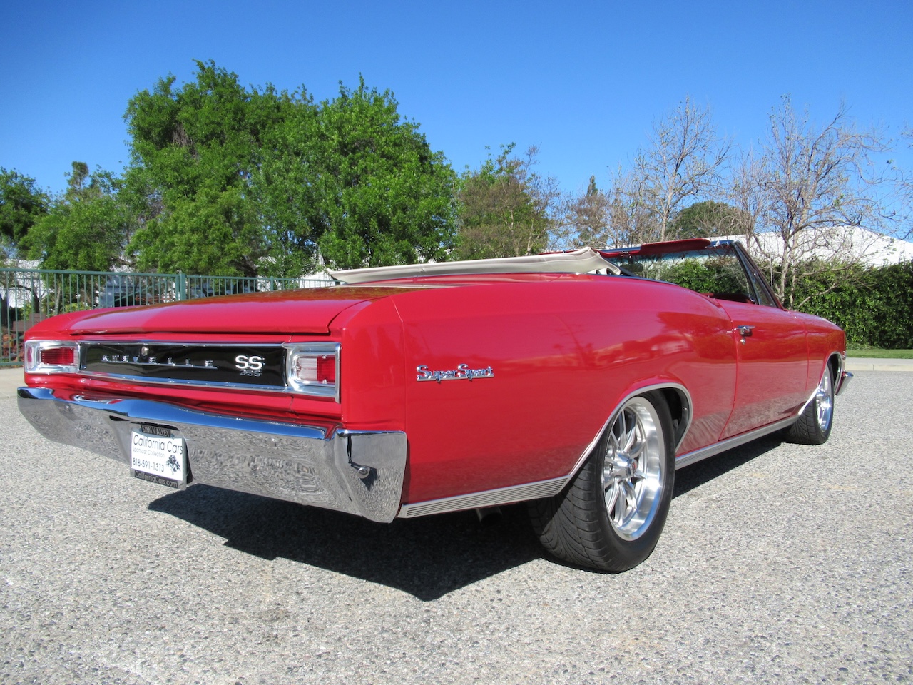 How about a true SS396 Convertible to add to the stable! This rare Super Sport is one of only 5,393 Convertibles made out of over 72,000 SS396 Chevelles for 1966. This one is finished in Regal Red with a White Convertible top per the cowl tag and was purchased new and stayed in Southern California since new. Although mostly original, a few drivability upgrades were made for comfort and better highway use. Under the hood sits the original and rebuilt matching number 396/325 Horsepower V8 with a polished Edelbrock intake, dual feed Holley 4 barrel carburetor, Ball Milled polished aluminum valve covers, factory power steering, CPP 4 wheel power disc brakes with slotted and drilled rotors, Vintage A/C with R134 Freon and a set of Ceramic coated thick flange Headers with dual exhaust running Flowmaster mufflers out to the rear for a sweet sound. Power gets put to the pavement through a fresh 700R4 automatic overdrive transmission followed by the original 12 Bolt rear differential with 3.73 Posi-Traction gear ratio. Front tubular control arms with adjustable coil overs and a set of 17 inch staggered Rev wheels on all four corners give it a little better handling and a bit of a Restomod stance. The Red vinyl interior is mostly stock in appearance with a bench seat, removable arm rest with cup holders, original steering wheel, knee knocker tachometer, Custom Auto Sound Stereo with kick panel speakers and a nice 3 pack set of under dash gauges for accurate engine vitals. This body style has always been a favorite and seems to be gaining a lot of popularity these days.