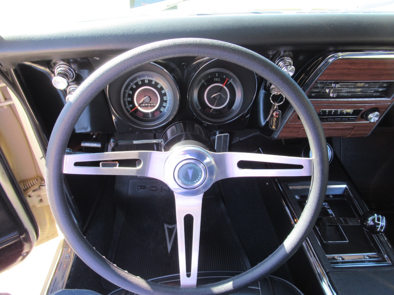 Take a look at this Firebird 400 Coupe owned by the original family up until a few years ago. Purchased new at Savage Pontiac in Monrovia California and never left the area. It still wears it’s original Black California license plates and comes complete with original Protecto-plate as well as PHS documentation. Finished in Mayfair Maize with a Black vinyl top per the cowl tag and it is straight and rust free having only one respray many years ago. The dual hood scoops along with the factory hood tachometer let you know that this wasn’t Grandma’s Firebird. The Original 14 inch steel wheels with wheel covers come with the car but the previous owner opted for the much better looking 15 inch PMD Rally wheels with the correct date stamps and wrapped in staggered BF Goodrich T/A radials with raised white letters for that classic muscle car look. Under the hood sits the matching number 400 V8 factory rated at 325 Horsepower that has under 1,000 miles since a complete rebuild and it is nicely detailed to stock specifications. Options include factory power steering, dual reservoir 4 wheel drum brakes, Pertronix electronic ignition upgrade and new correct dual exhaust heading all the way to the rear. Power gets put to the pavement through a Muncie 4 Speed manual transmission followed by a Posi-Traction rear differential with factory traction bars. The Black vinyl interior consist Bucket seats, center console with factory clock, Deluxe door panels, Tilt steering column with 3 spoke comfort grip steering wheel and a stock looking modified AM/FM Stereo with Blue tooth connectivity. This partially restored Classic Firebird is a true original survivor that can be driven as is or take it to the next level with a fresh paint job, either way expect a daily thumbs up everywhere you go!