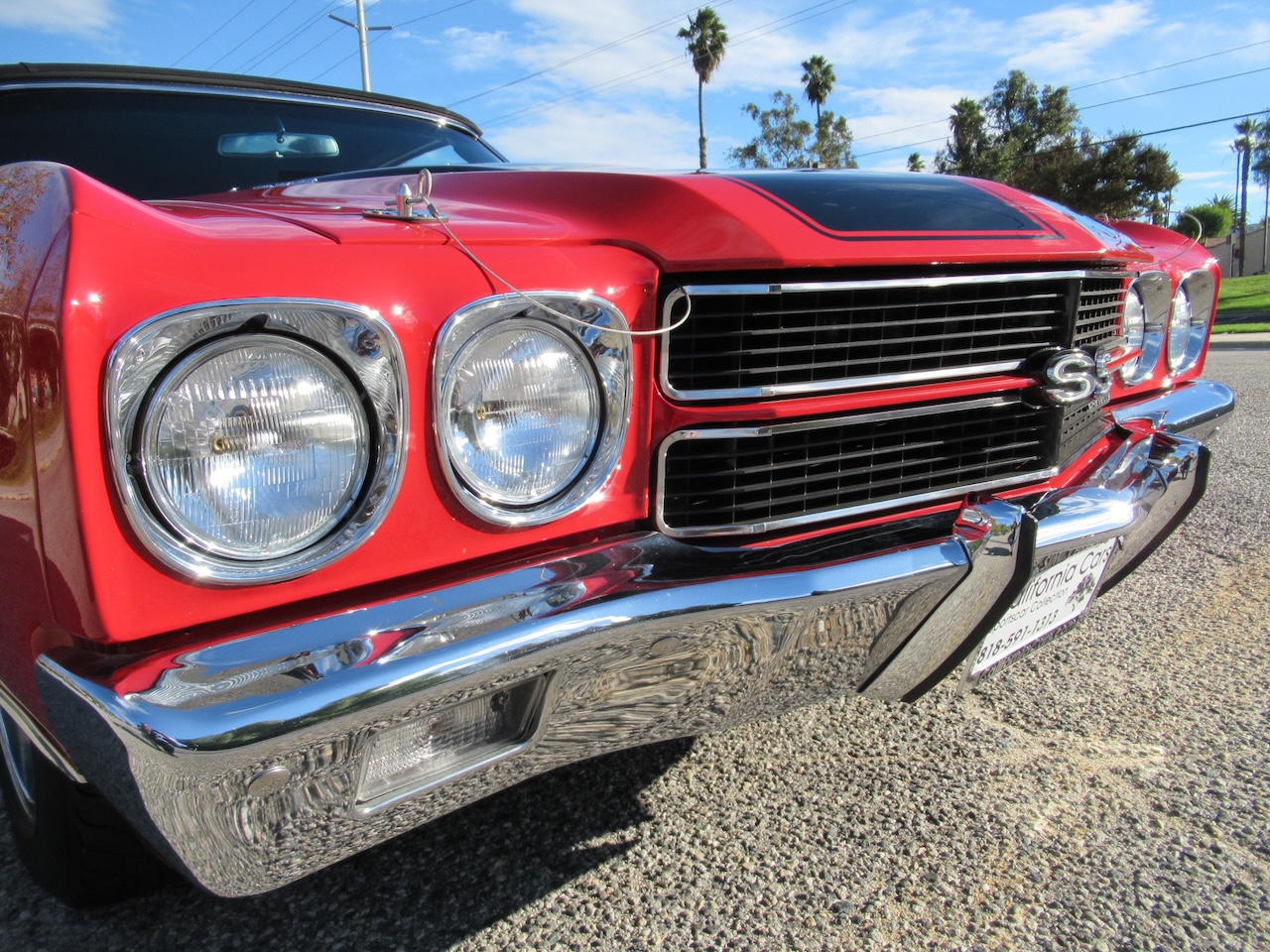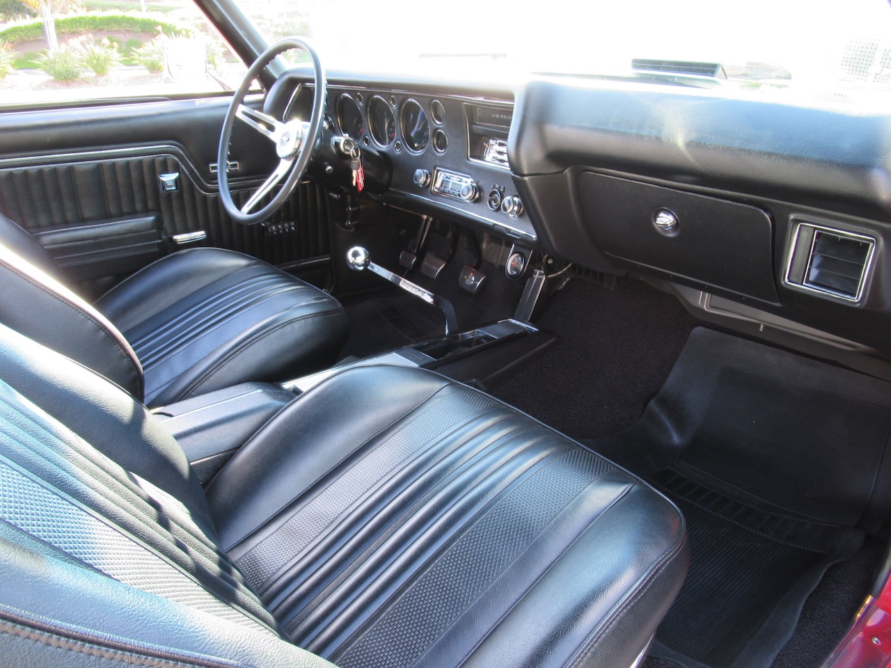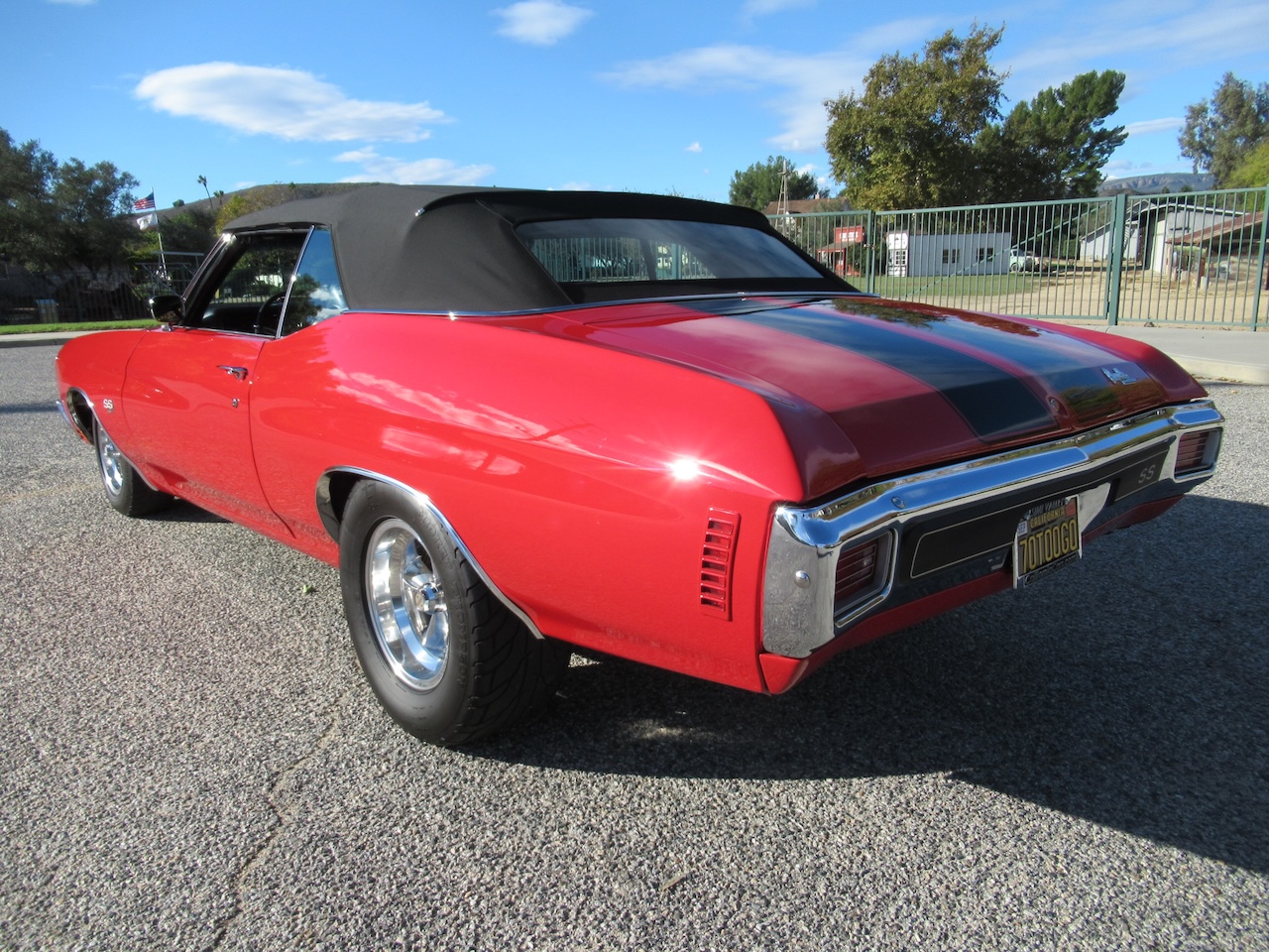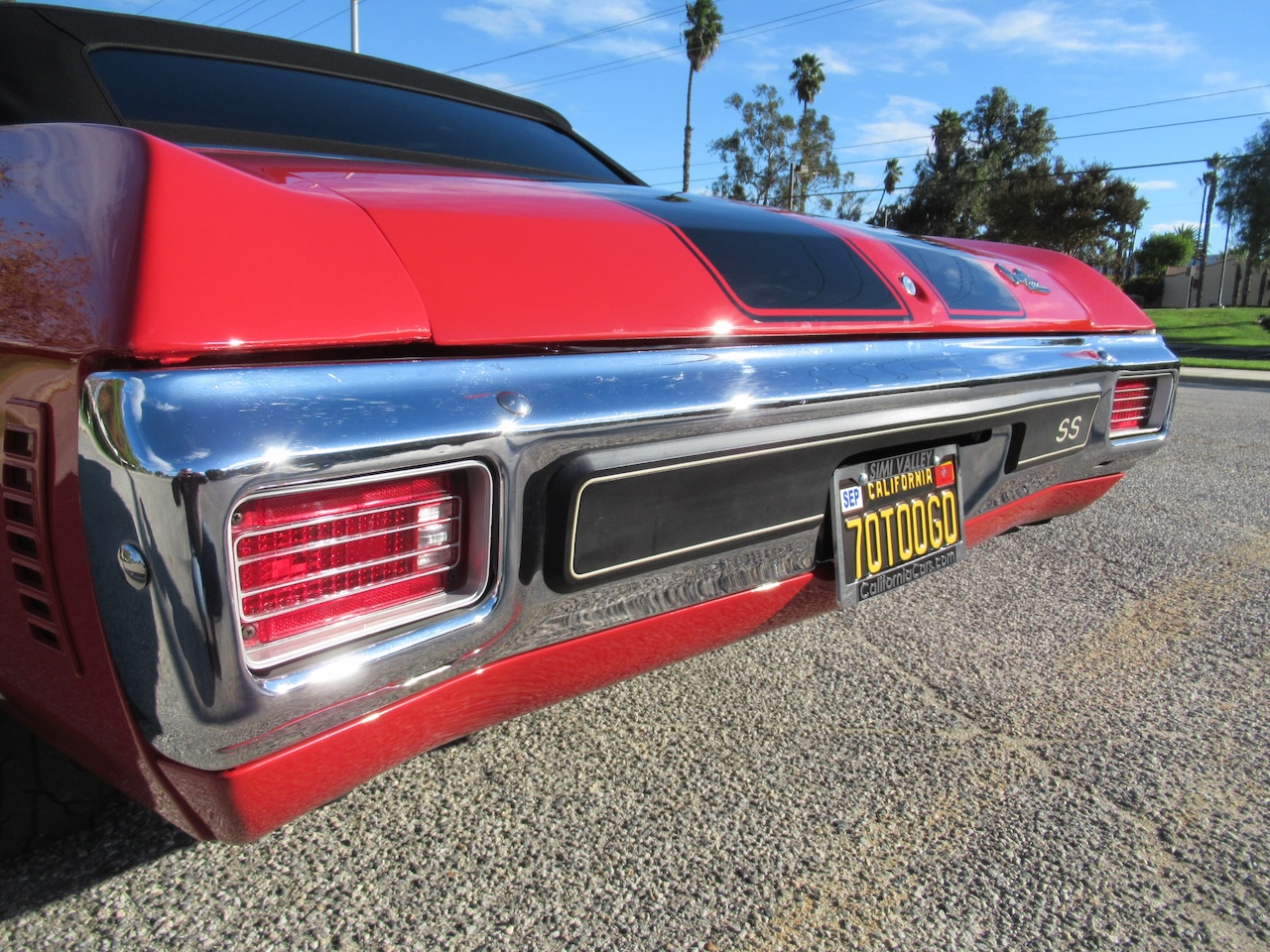 A fresh frame off restored Super Sport drop top! This amazing Convertible Chevelle is finished in Cranberry Red with Black Stripes per the cowl tag, functional cowl induction hood and a Black Stayfast power top with a glass rear window. Chevrolet did not produce many SS Convertibles in 1970 and this one has lots of options and upgrades. Under the hood sits a ZZ502/502 Horsepower GM crate motor (Disguised as a 454) with aluminum heads, Holley double pumper 4 barrel carburetor, MSD Digital E distributor, Black powder coated aluminum radiator, CPP 4 wheel power disc brakes, close ratio power steering, Hedman ceramic coated headers with custom dual exhaust and flanged Flowmaster mufflers. The power gets distributed through a Keisler Engineering 5 Speed manual transmission with a Centerforce Performance clutch, new custom drive shaft followed by a 12 Bolt Posi-Traction rear differential with a 3.73 gear ratio. The suspension consist of Global West upper and lower control arms with dropped spindles, front and rear oversized sway bars, rear Global west suspension with KYB gas shocks on all 4 corners all sitting on a rare set of 15 inch staggered T70 polished American Racing wheels wrapped in some Mickey Thompson Street/Strip radials for an awesome Classic Muscle car look. The completely new interior does not disappoint with Black vinyl bucket seats finished in new Legendary upholstery with barely noticeable larger bolsters, new correct carpeting, center console with Muncie floor shifter, power windows, power locks, Full gauge package with tachometer, added under dash oil pressure gauge, factory tilt steering column with 3 spoke GM comfort grip steering wheel and Custom Auto Sound Stereo. The massive amount of powder coating, plating and man hours truly shows in this car and it is ready to cruise the highways and start collecting trophies!