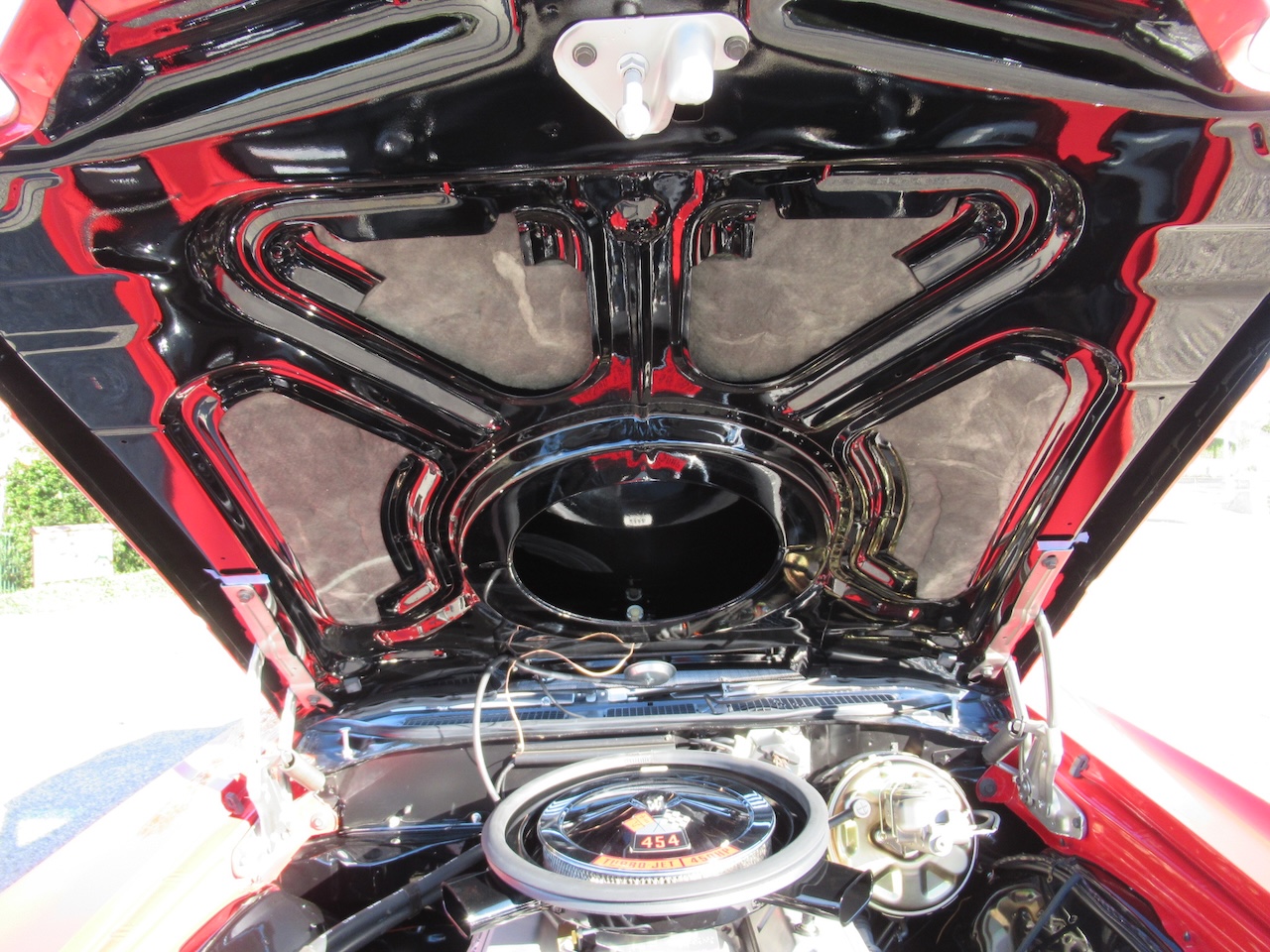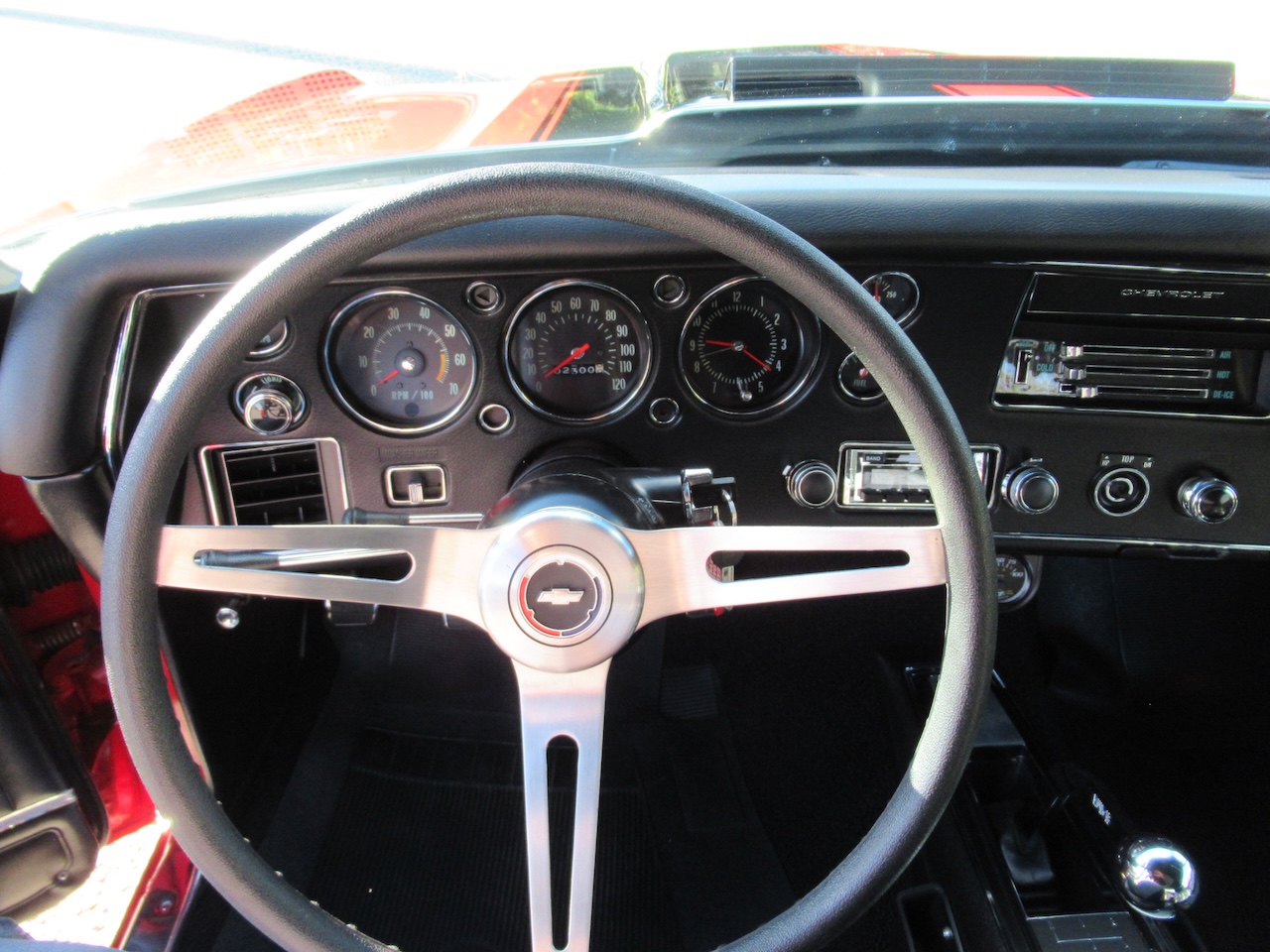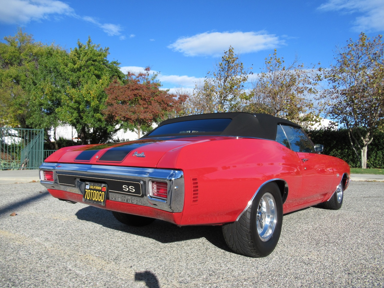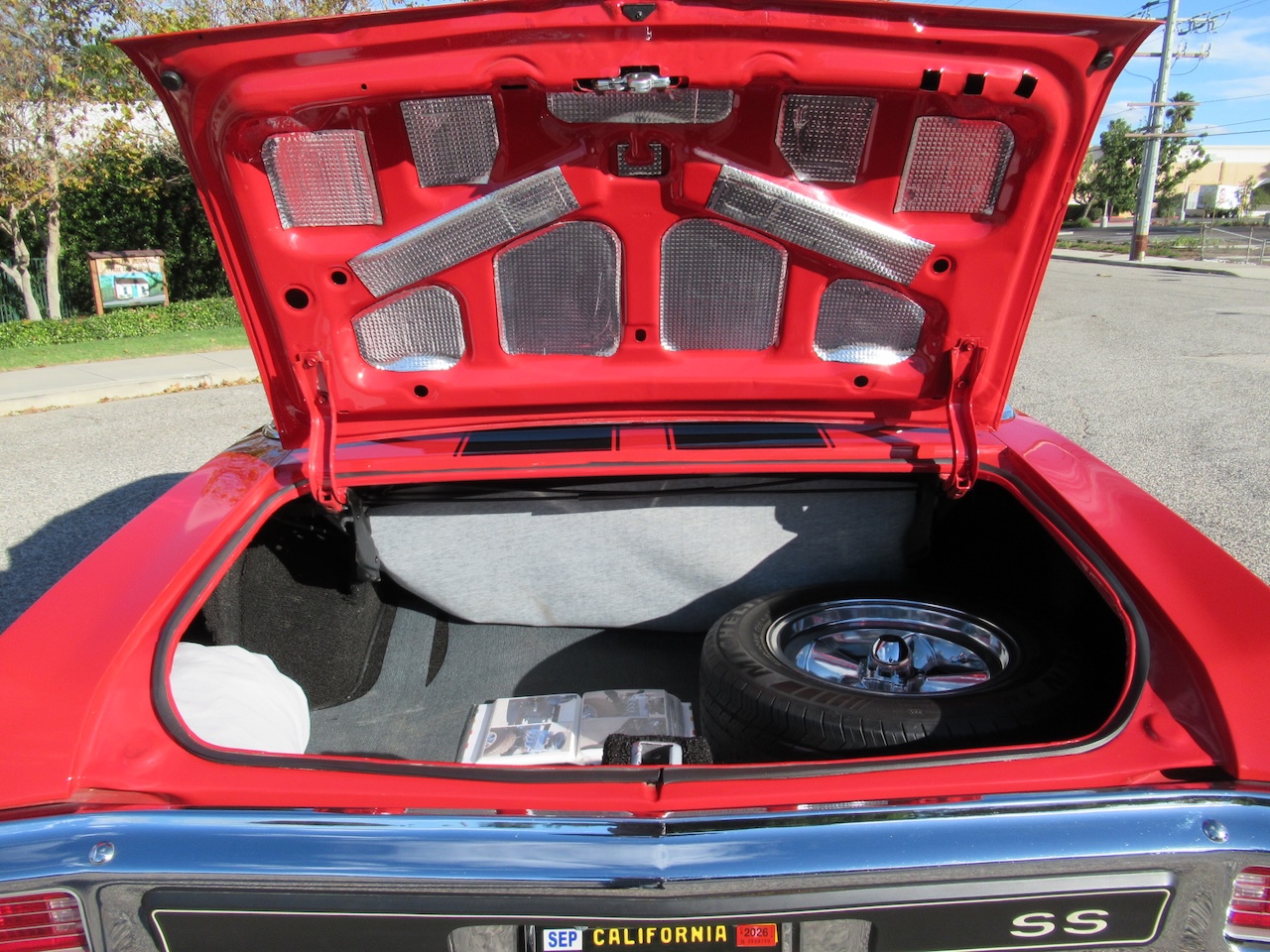 A fresh frame off restored Super Sport drop top! This amazing Convertible Chevelle is finished in Cranberry Red with Black Stripes per the cowl tag, functional cowl induction hood and a Black Stayfast power top with a glass rear window. Chevrolet did not produce many SS Convertibles in 1970 and this one has lots of options and upgrades. Under the hood sits a ZZ502/502 Horsepower GM crate motor (Disguised as a 454) with aluminum heads, Holley double pumper 4 barrel carburetor, MSD Digital E distributor, Black powder coated aluminum radiator, CPP 4 wheel power disc brakes, close ratio power steering, Hedman ceramic coated headers with custom dual exhaust and flanged Flowmaster mufflers. The power gets distributed through a Keisler Engineering 5 Speed manual transmission with a Centerforce Performance clutch, new custom drive shaft followed by a 12 Bolt Posi-Traction rear differential with a 3.73 gear ratio. The suspension consist of Global West upper and lower control arms with dropped spindles, front and rear oversized sway bars, rear Global west suspension with KYB gas shocks on all 4 corners all sitting on a rare set of 15 inch staggered T70 polished American Racing wheels wrapped in some Mickey Thompson Street/Strip radials for an awesome Classic Muscle car look. The completely new interior does not disappoint with Black vinyl bucket seats finished in new Legendary upholstery with barely noticeable larger bolsters, new correct carpeting, center console with Muncie floor shifter, power windows, power locks, Full gauge package with tachometer, added under dash oil pressure gauge, factory tilt steering column with 3 spoke GM comfort grip steering wheel and Custom Auto Sound Stereo. The massive amount of powder coating, plating and man hours truly shows in this car and it is ready to cruise the highways and start collecting trophies!